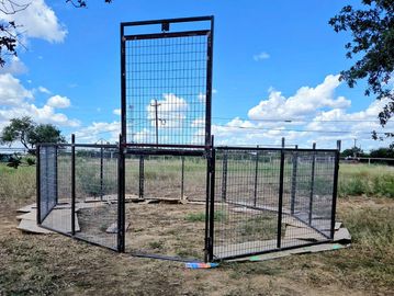 After testing and refining the trap in the field, I finalized the design. Today, I’m building fail-proof hog traps featuring a roller bearing door system that locks upon closing, preventing hogs from lifting the door and escaping. These traps come with a factory-warrantied camera system, 5-foot panels, and a 1-foot roller top that pushes hogs back into the trap if they attempt to climb out.